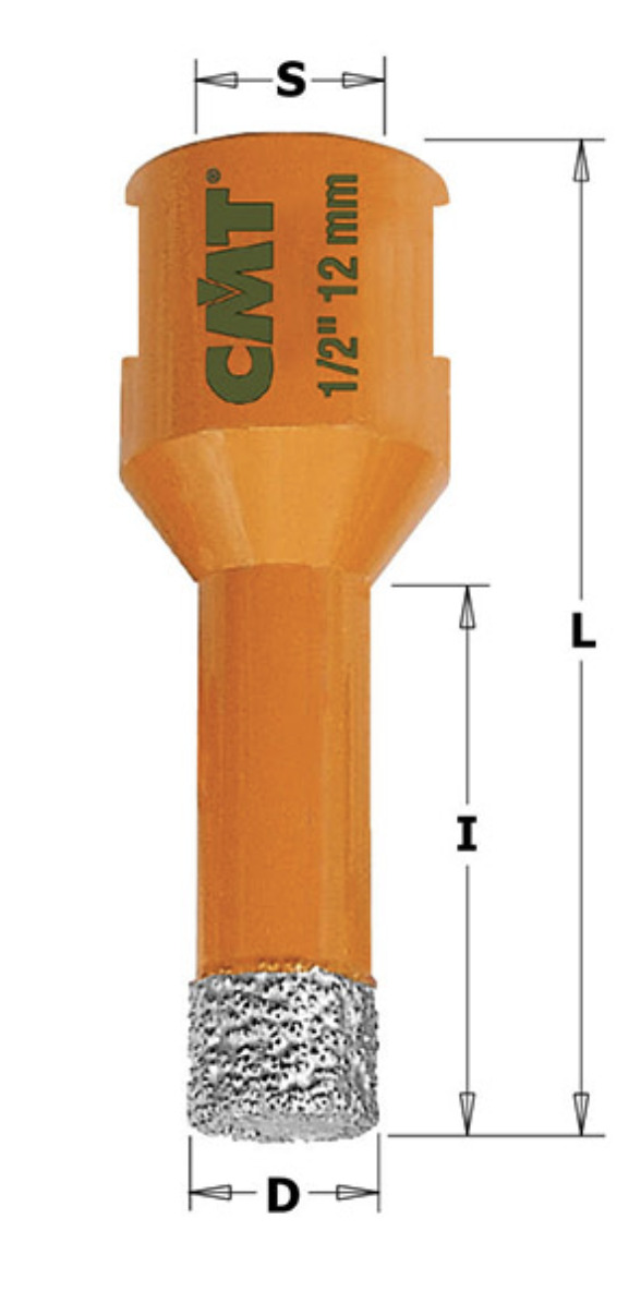 Merk: CM. Diamant droogboor met M14 opname voor haakse slijper voor marmer, graniet en keramiek. Diamater: 43 mm x 40 x 60 mm