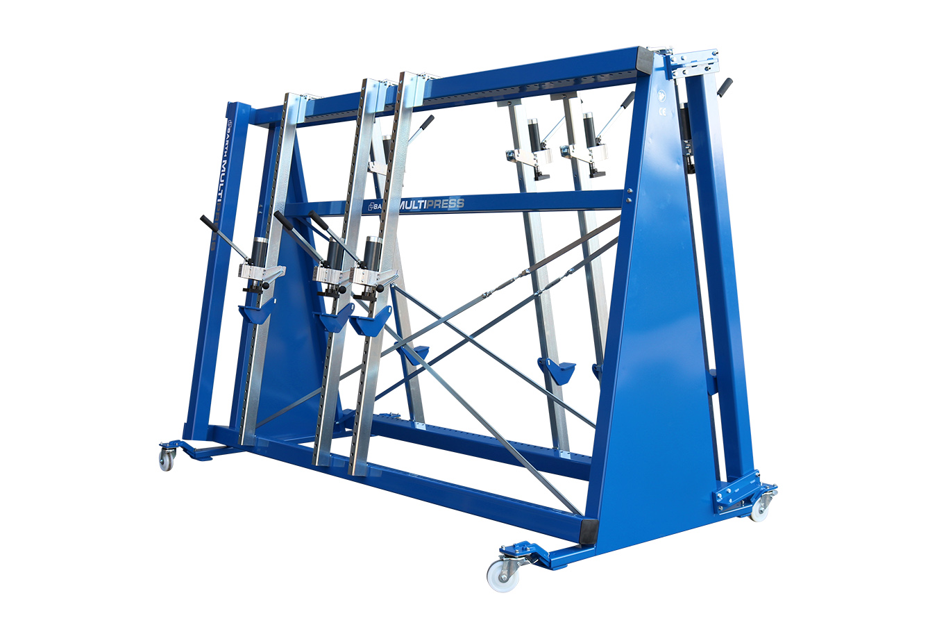 3 hydraulische perseenheden bewegend op kogellagers en 90° aanslag.