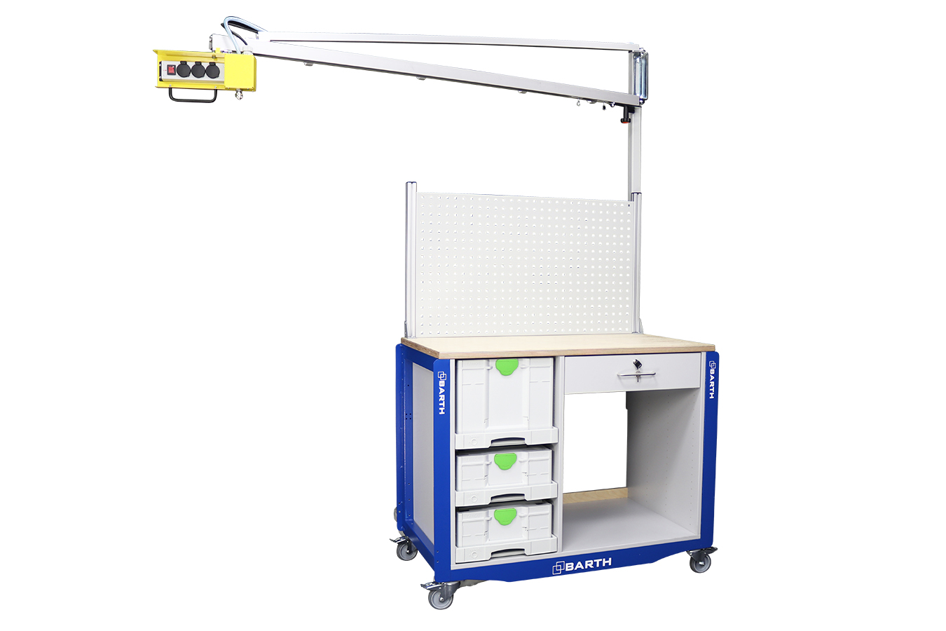 Zwenkarm met 3 stekkerdozen en persluchtaansluiting (exclusief compressor).
